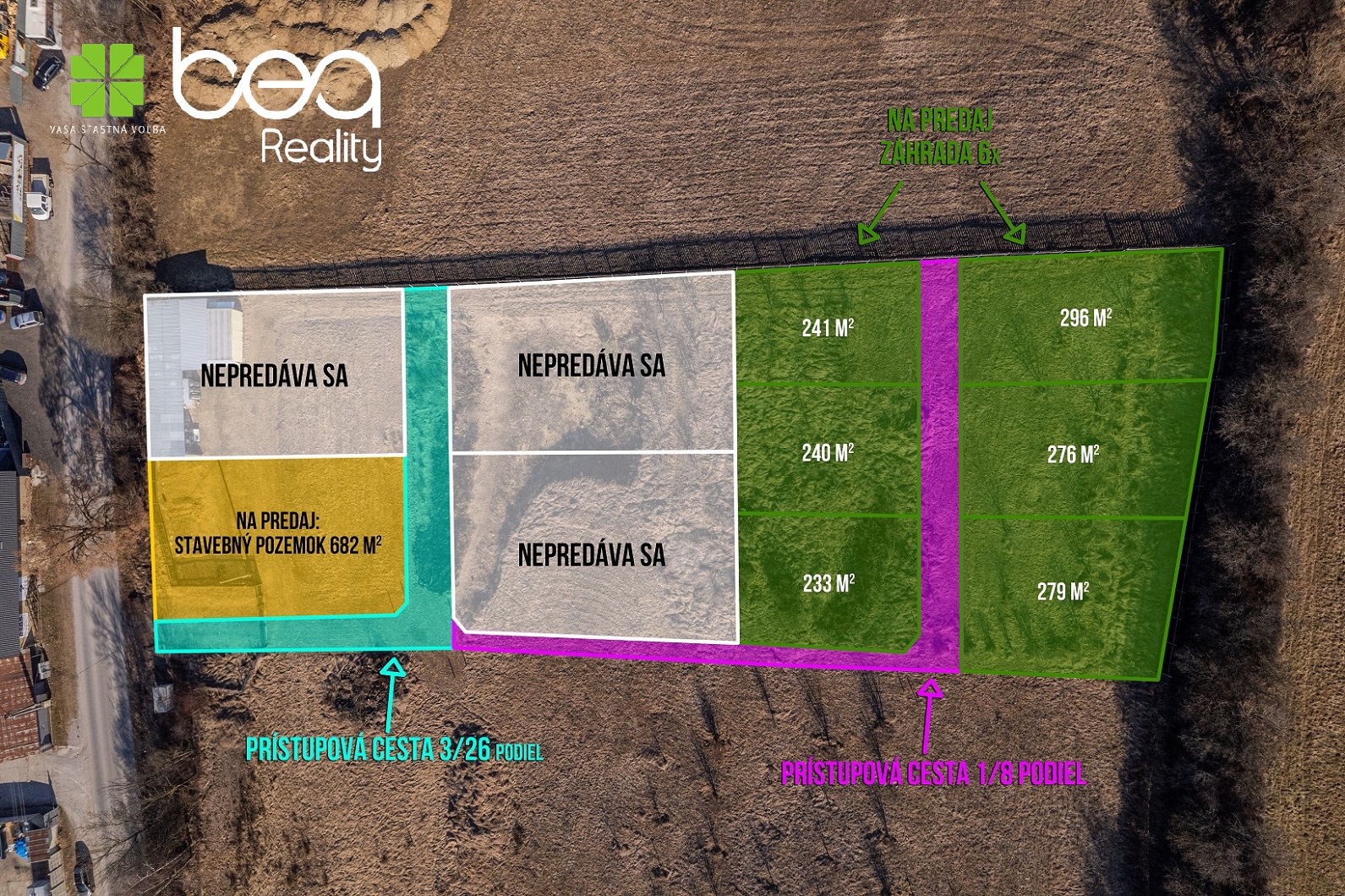 - s vjazdom po spevnej prístupovej ceste – tá bude spoločná pre všetkých vlastníkov pozemkov v lokalite