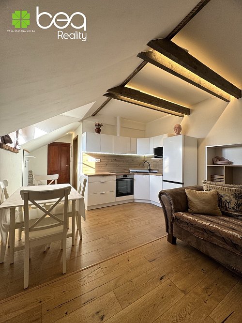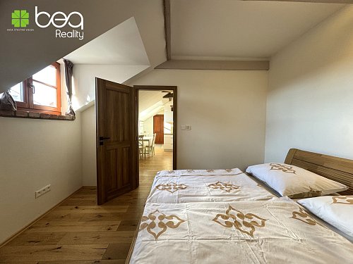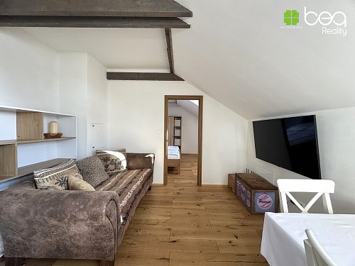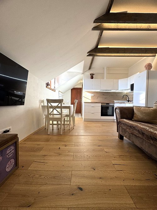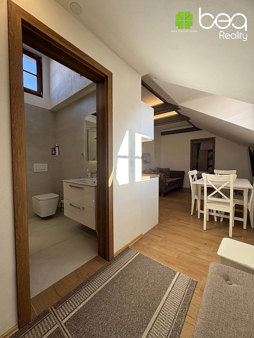 Počas renovácie, ktorá bola dokončená v roku 2025, boli použité kvalitné materiály (hrúbka zateplenia a izolácií pod strechou je až 50 cm). Byt je priestranný, svetlý, teplý, vzdušný, s tromi oknami. Vchádza sa do neho vstupnými dverami od schodiska. Vzadu za spálňou je východ na terasu. Dom nemá výťah.
