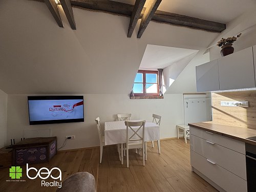 Ponúkam vám na dlhodobý prenájom kompletne a vkusne zrenovovaný veľký 1-izbový byt, ktorý sa nachádza na 2. poschodí meštianskeho domu v centre Levoče priamo na Námestí Majstra Pavla v jeho zadnej pokojnej dvorovej časti. Celková rozloha bytu je 38,50 m2. Je zariadený nábytkom a elektrickými spotrebičmi a pripravený hneď do užívania.