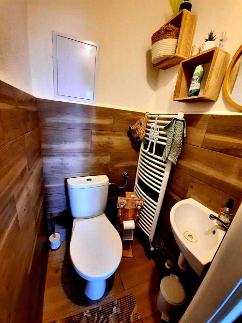 - pozostáva z troch obytných miestností a príslušenstva, ktoré tvorí chodba, kuchyňa, kúpeľňa, WC a dve pivnice (v jednej z nich je umiestnený plynový kotol na kúrenie a ohrev vody)